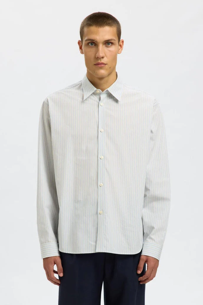 Selected Timben Stripe LS Poplin Shirt Angora