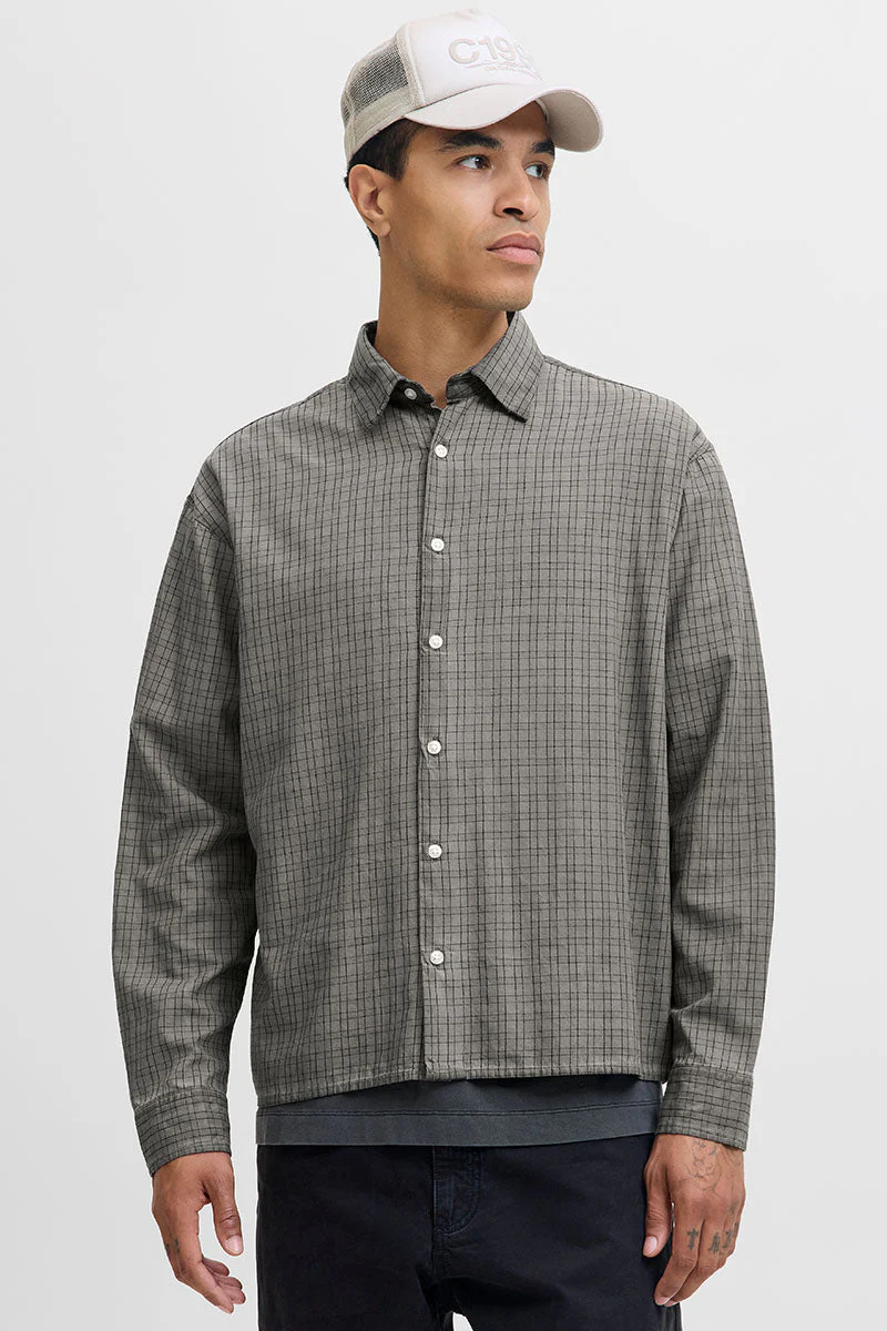 Jack & Jones Fade Overdyed Loose Fit LS Shirt Asphalt
