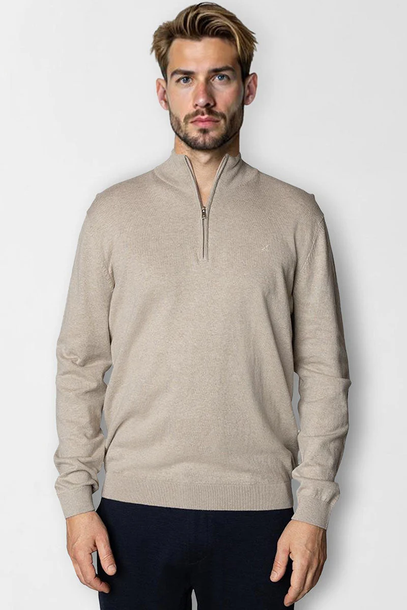 Clean Cut Copenhagen Claude half zip knit Dark beige melange