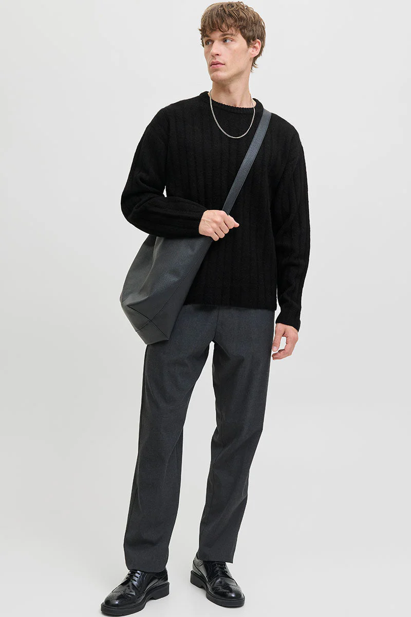 Jack & Jones Emil Knit Cable Crew Neck Black