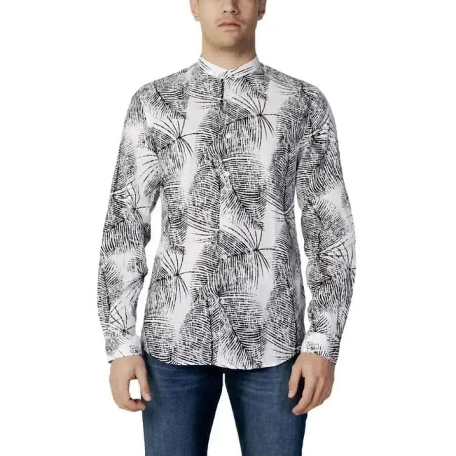 Antony Morato Men’s Black Geometric Long Sleeve Shirt (Chemise à manches longues géométriques)