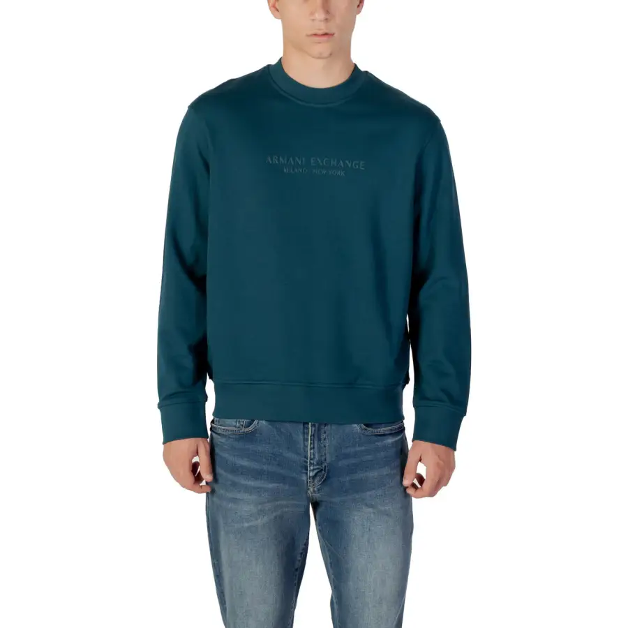 Armani Exchange Blue 100% Cotton Round Neck Mens Fall Winter Sweatshirt