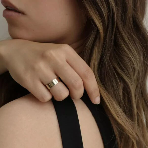 - Jonc large en argent sterling 925, plaqué en or 14k