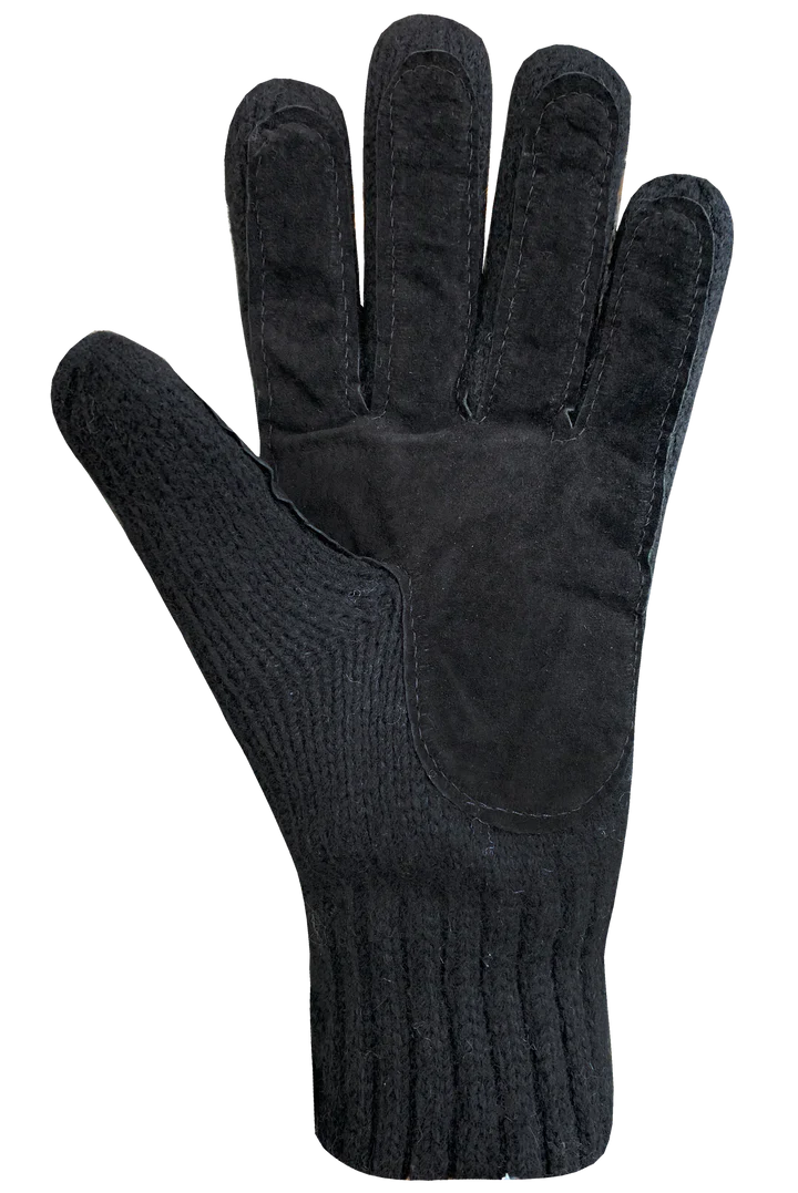 - Gants de tricot en laine avec une paume en cuir suédé