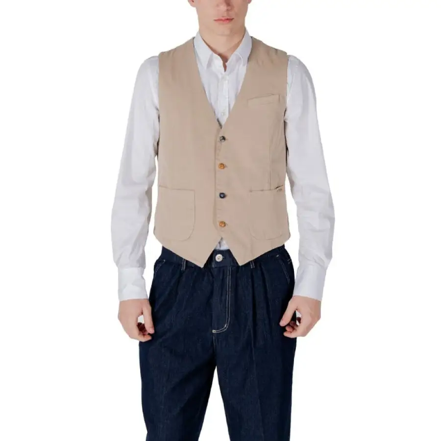 Marque: Gianni Lupo Genre: Hommes Taper: Gilets Saison: Printemps/Été DÉTAILS DU PRODUIT • Couleur: bleu • Fixation : boutons • Manches: sans manches • Encolure: col en V • Poches : poches avant • Code de l’article: GL9710 COMPOSITION ET MATÉRIAU • Composition: -100% coton • Lavage: lavage en machine à 30°