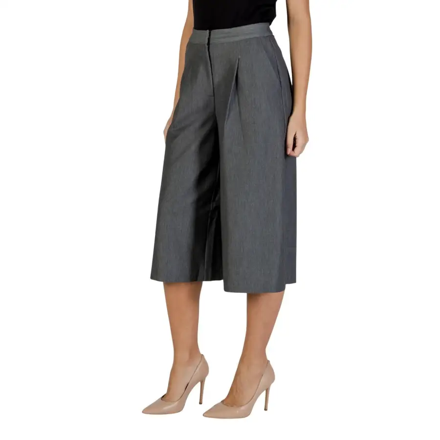 Ichi Women Grey Trousers with Zip and Pockets (pantalon gris avec fermeture éclair et poches)