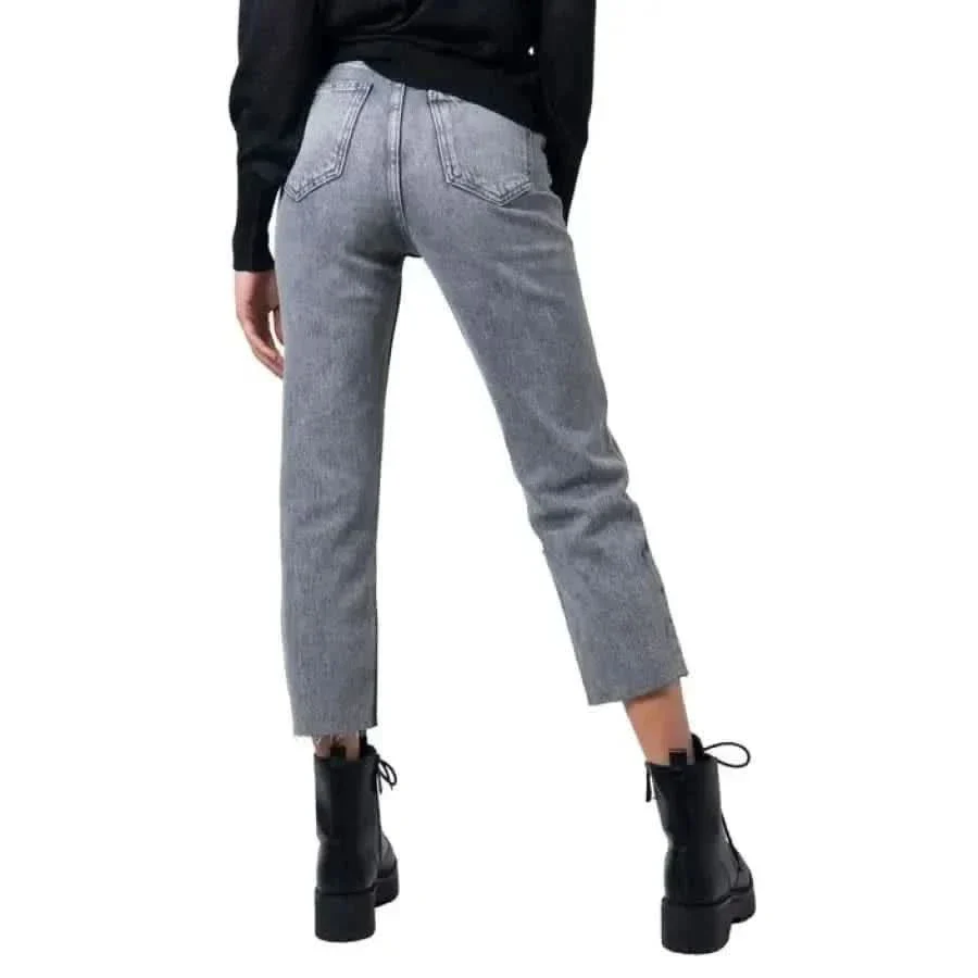 Jeans gris pour femmes avec poches et fermeture à glissière