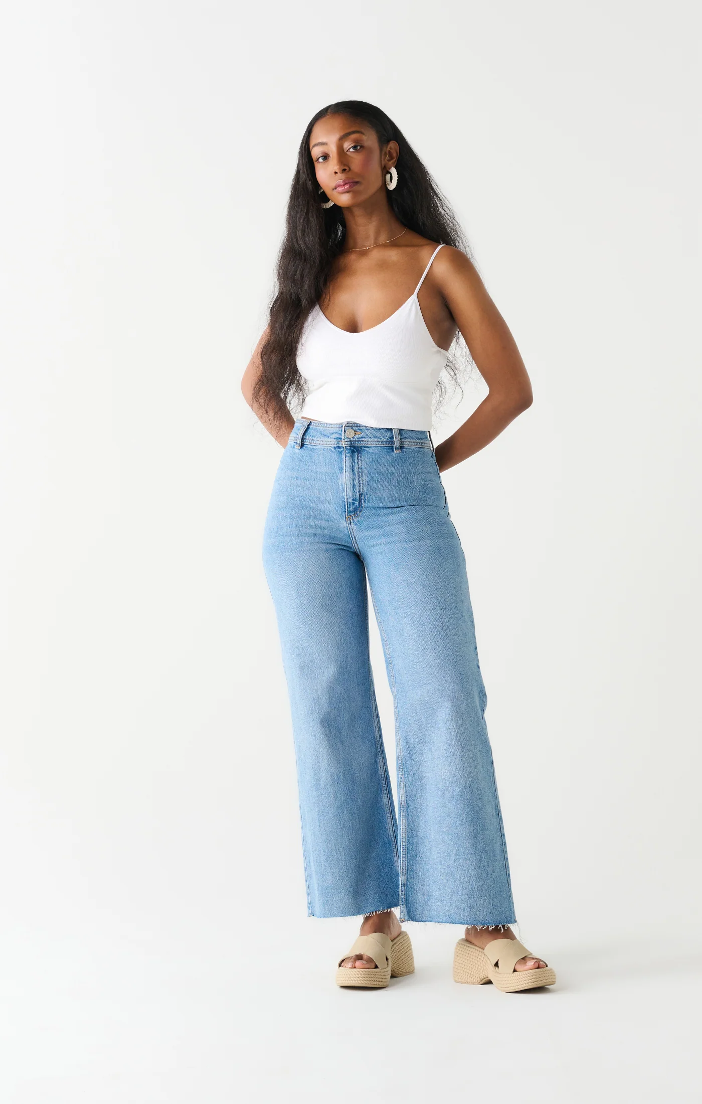 Jeans High Waist Culotte Med Blue Wash Dex